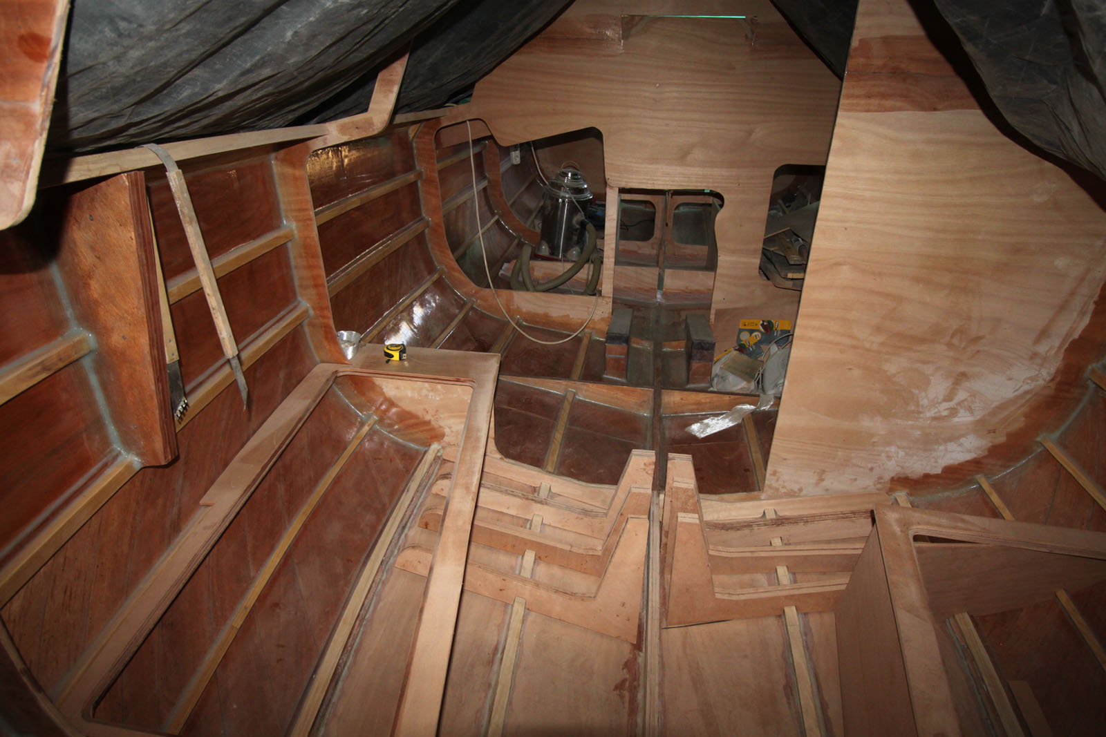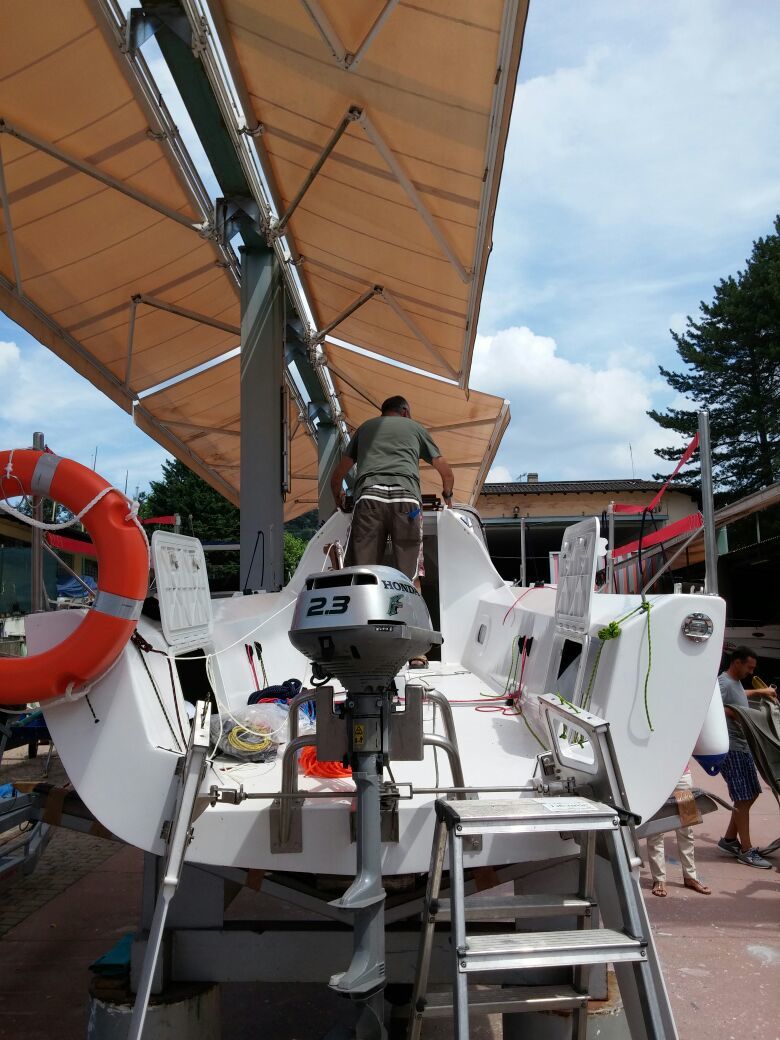 works in progress on Hirundo 750 (modified version with inboard diesel engine)